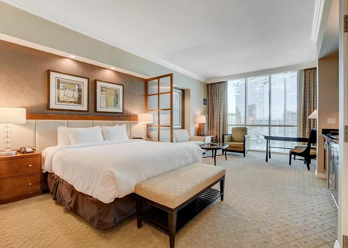 Die Suite überzeugt mit atemberaubenden Ausblicken auf den ikonischen Strip, die den Gästen täglich ein spektakuläres Panorama bieten. Hochwertige Annehmlichkeiten und stilvolles Design schaffen eine Atmosphäre der Eleganz und des Komforts, perfekt für diejenigen, die Luxus und Behaglichkeit schätzen.